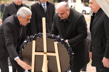 رئيس الجبهة التركمانية يضع إكليل ورد على ضريح شهداء التون كوبري في الذكرى الـ35 للمجزرة