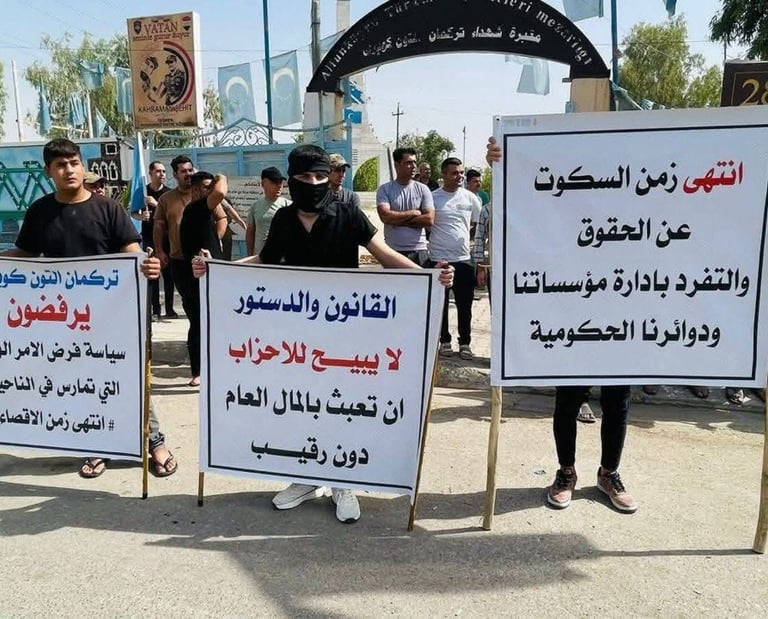 في ظل الاحتجاجات السلمية التي تشهدها ناحية التون كوبري من قبل أبناء شعبنا التركماني، نؤكد في الجبهة التركمانية العراقية وقائمة جبهة تركمان العراق الموحد، وقوفنا الكامل والثابت إلى جانب مطالبهم العادلة، ورفضنا القاطع لأي محاولات تهميش أو تغييب تطال وجودهم وهويتهم ودورهم في إدارة شؤون منطقتهم.