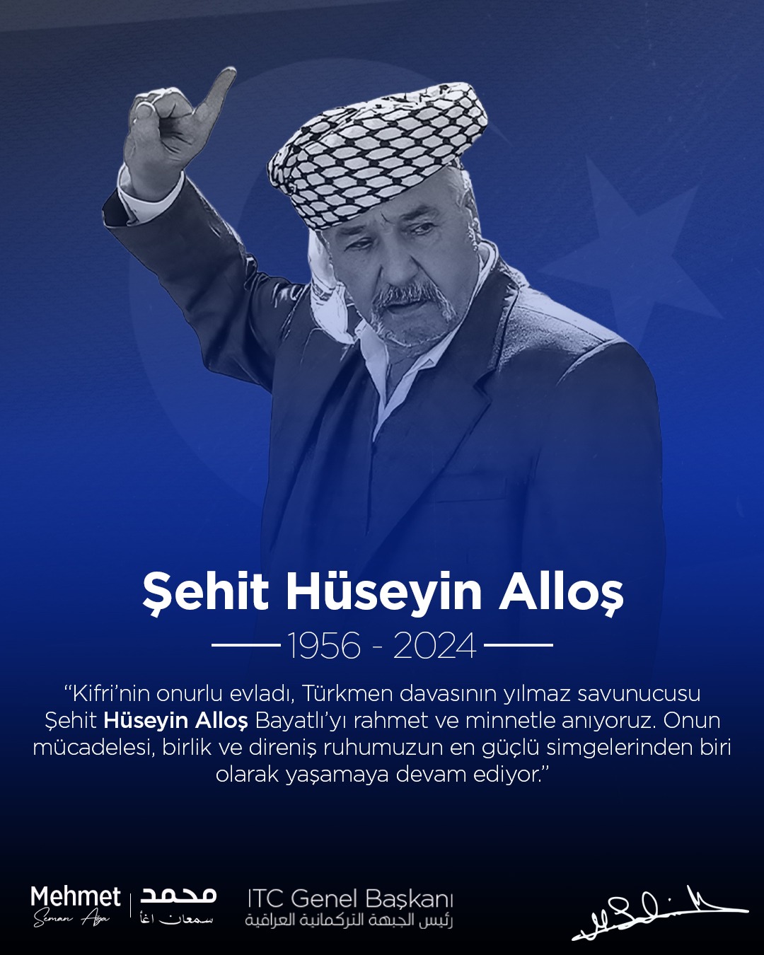 كما شدد على أن الوفاء لدماء الشهداء لا يكون بالكلمات فقط، بل من خلال الحفاظ على وحدة الصف التركماني وتعزيز الحضور السياسي والوطني والدفاع عن حقوق الشعب التركماني في جميع المحافل.