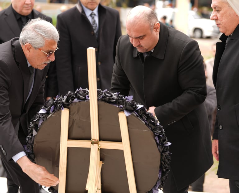 رئيس الجبهة التركمانية يضع إكليل ورد على ضريح شهداء التون كوبري في الذكرى الـ35 للمجزرة
