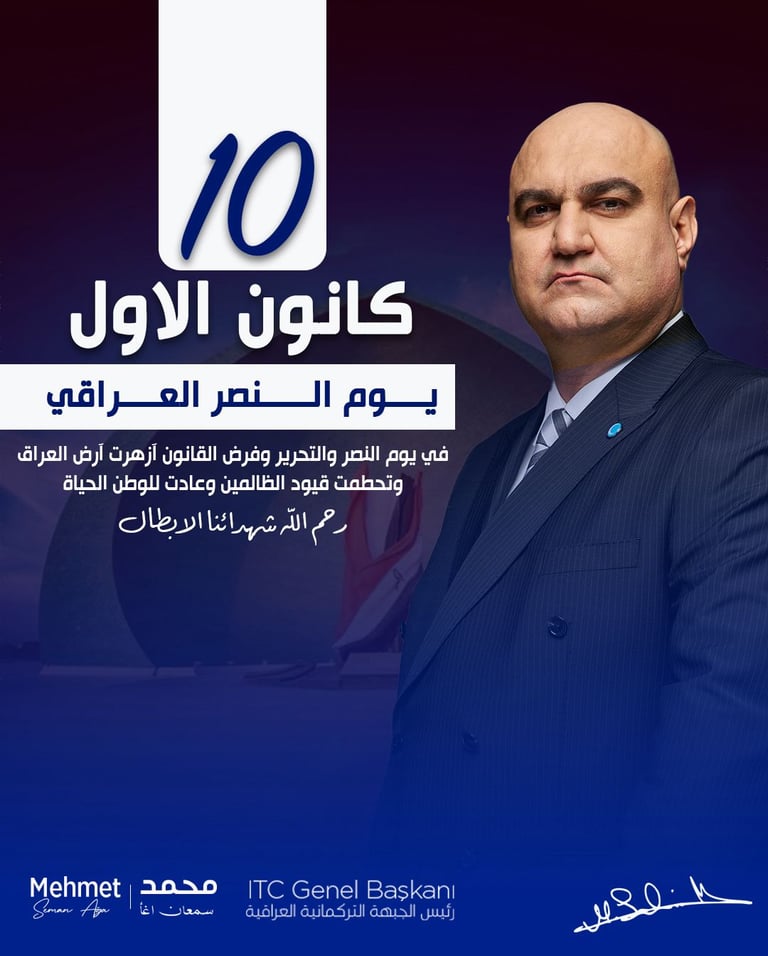 يُمثّل يوم النصر العراقي أكثر من كونه ذكرى عسكرية؛ فهو تجسيد لوحدة العراقيين حينما توحّدوا بكلّ مكوّناتهم وأطيافهم، وفي مقدمتهم التركمان، لهزيمة أحد أكثر التنظيمات دموية وظلامًا. لقد أثبت العراقيون أن إرادتهم عندما تتوحّد تصبح جبلاً لا تهزه العواصف، وأن أمن البلاد وسيادتها مسؤولية وطنية مشتركة.